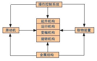 起重机的机械组成及工作原理发表时间:2021-07-06 16:56 起重机由驱动装置、工作机构、取物装置、操纵控制系统和金属结构组成。通过对控制系统的操纵,驱动装置将动力的能量输入,转变为机械能,在传递给取物装置。取物装置将被搬运物体与起重机联系起来,通过工作机构单独或组合运动,完成物体搬运任务。可移动金属结构将各组成部分连接成一个整体,并承载起重机的自重和吊重。 起重机的组成及工作原理